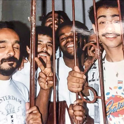 Willie Colón y su banda tras las rejas. Autor desconocido.