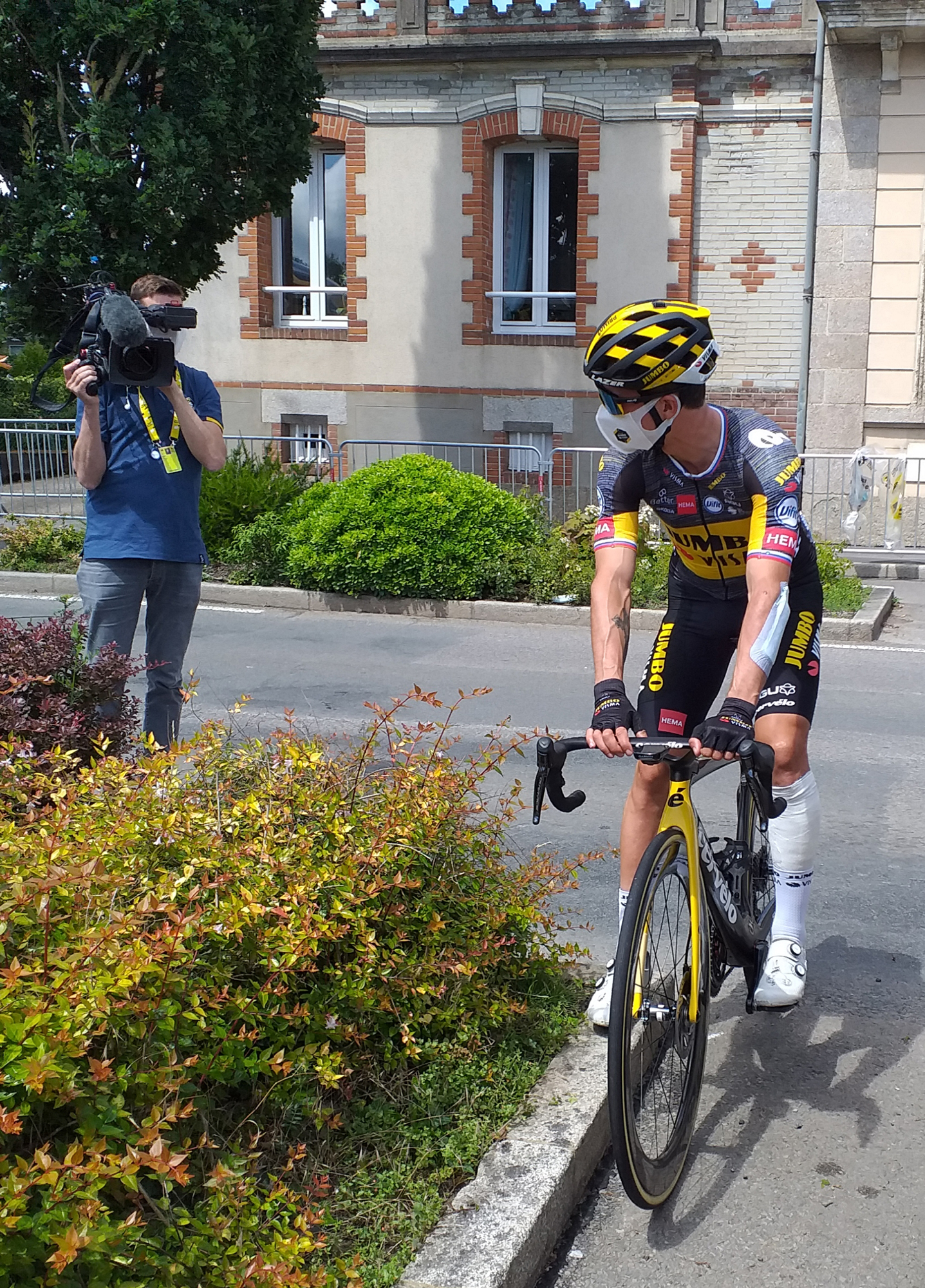 Como Carlos Arribas, Nairo ha tenido un cambio extravagante. Con decirles que hasta regala él mismo las caramañolas y, a pesar de la presencia subrepticia del covid, se toma fotos con sus fans y firma camisetas como Cristiano o Messi.