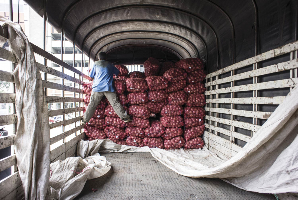 Los cebolleros tienen veinte días para sacar la blanca y un mes largo para buscarle destino a la roja. Con el paso de los días crece el olor y el nerviosismo. “El aire es la vida de la cebolla”, me dice William mientras señala los tres extractores sobre los bultos en el fondo del local. Un lote de cebolla ocañera al que le quedan cinco o seis días de vida. Ocaña es el gran productor de cebolla roja en Colombia, pero no produce suficiente para abastecer el mercado nacional. “Aquí usamos la ocañera solo cuando no hay peruana. Es más chiquita, más cara y se daña más rápido”, me dice Darío, quien no se contenta con las fotos vía Wassap y tiene un hombre encargado de las compras en el Perú: “Yo llevo 35 años comprando cebolla en Perú —dice el enlace de Darío en Arequipa—. Empezamos con la idea de llevarla a Venezuela y terminamos trayendo a Colombia. La cebolla peruana tiene el agua necesaria, ni una gota más, no guarda humedad”. También llega alguna cebolla blanca desde Boyacá y una que otra carga desde la China que levanta tantas sospechas como los tenis: “Esas cebollas chinas no tienen sabor, son muy secas y cuando se pudren huelen peor que la de acá”, me dice una de las encargadas de una venta al menudeo.