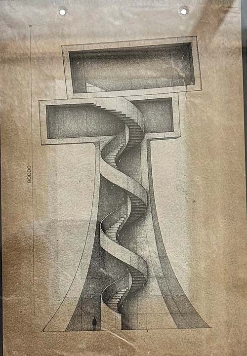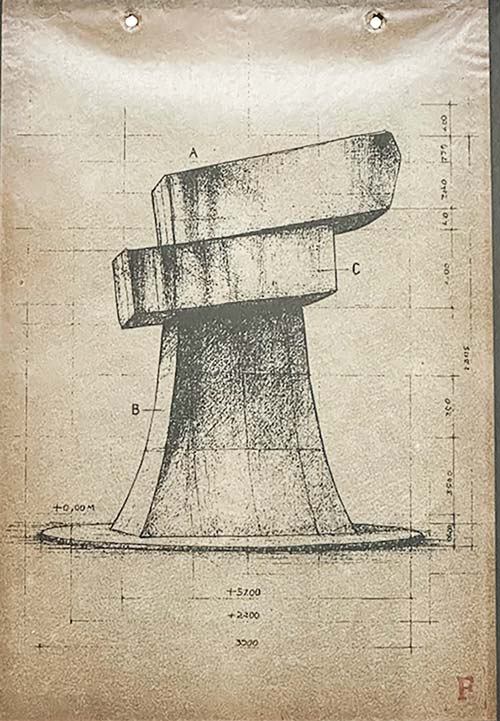 Regresó a Colombia en 1969 con un cuaderno de bocetos en el que dibujó bloques, rampas, ángulos ciegos, laberintos. En el reverso de cada página había una palabra escrita en mayúsculas que siempre se tachaba con un gran círculo, como si de ahí emergiera un agujero negro, una imposibilidad. Decía que la idea le había llegado en el tren entre Zagreb y Liubliana, cuando el vagón se detuvo frente a un campo recubierto de nieve como una sábana recién lavada en blanqueador. Había una cruz torcida a un costado de la vía y, al lado, un perro dormido en la estación. Escribió: “Hay países que siguen viviendo ahí, en la pausa entre una guerra y la siguiente”. Construyó una maqueta de madera de sesenta centímetros. Era una pieza sobria: dos bloques laterales sosteniendo un tercero, horizontal, como un peso suspendido. En su base, un espacio vacío: una plaza circular para reunirse y pensar. “La plaza de los derrotados”, puso en la base de la maqueta.