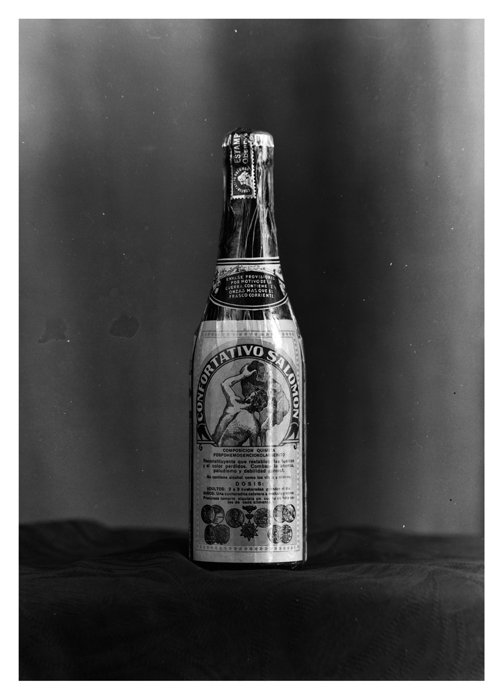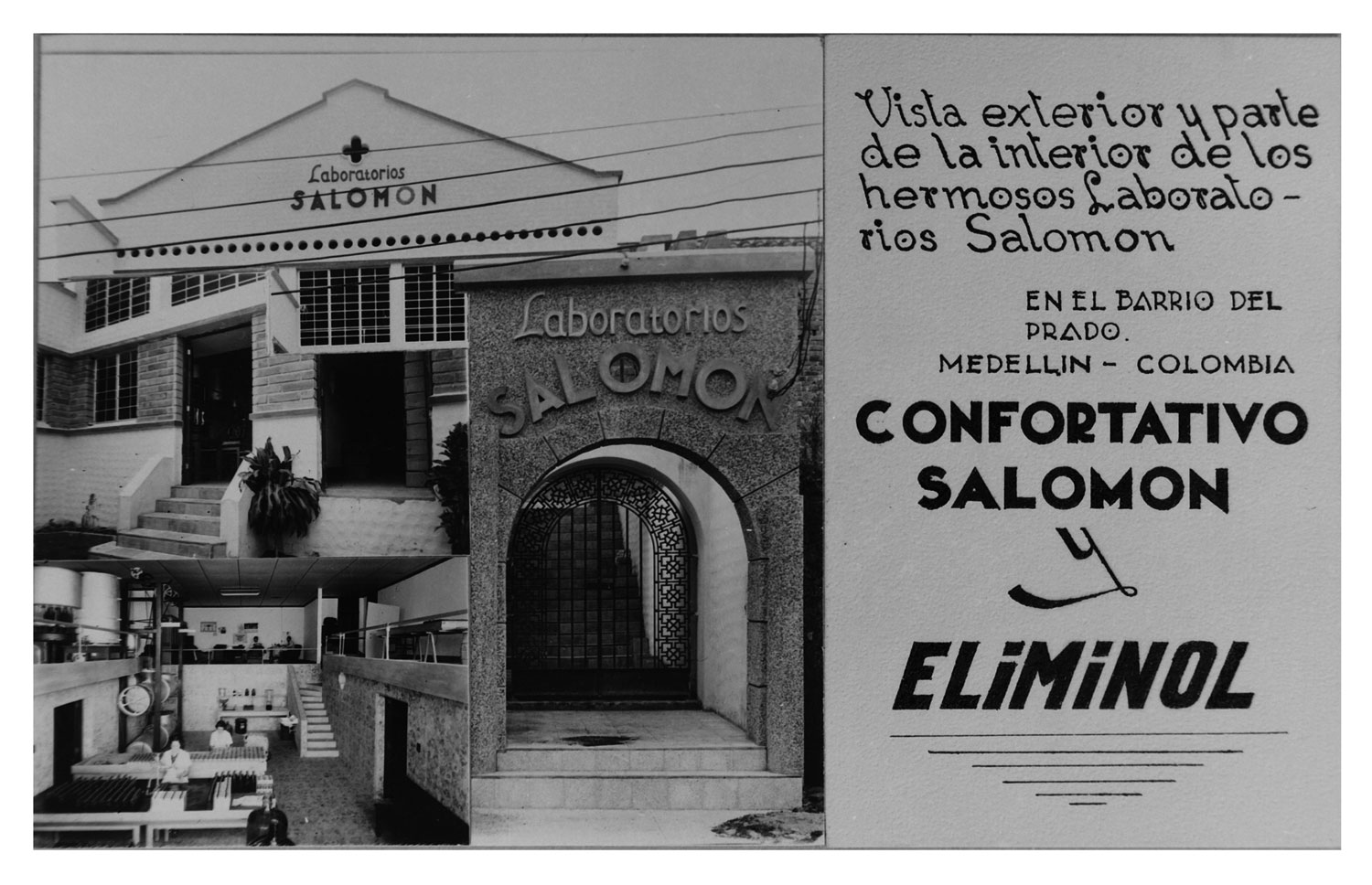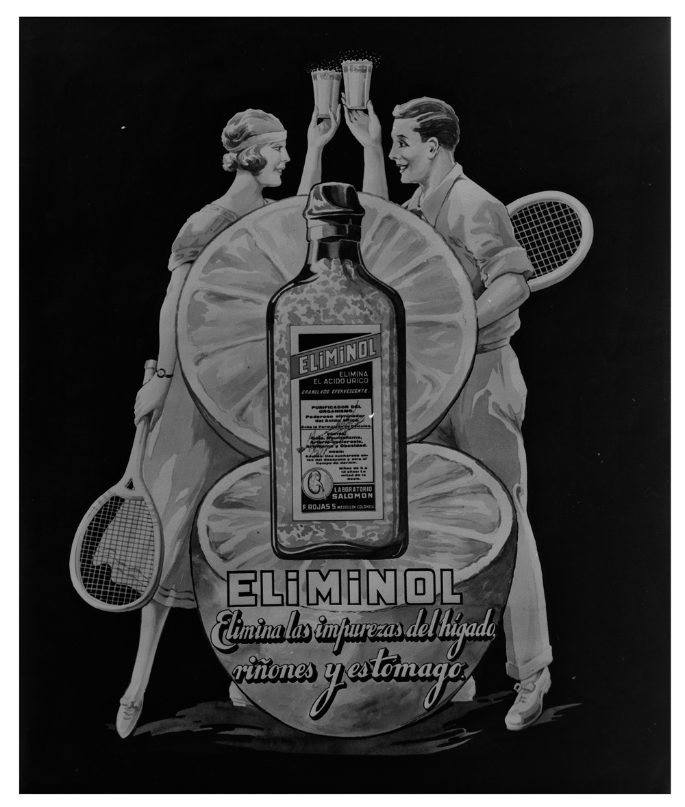 Hubo un tiempo en el que el yerbatero y el farmacéutico confluían en un lugar común: la botica. Y por extensión, en el boticario. Este personaje, que no era un chamán pero tampoco un químico, fue un personaje fundamental en sociedades del pasado pues era una especie de puente entre el conocimiento ancestral y la técnica moderna. En una ciudad a la vez urbana y rural como fue Medellín por tanto tiempo, en cuya población los médicos de facultad no abundaban, los dueños de botica terminaban ofreciendo la solución para el dolor; para los males diarios: la consunción, el patatús, el colerín calambroso, la tontina, el vértigo lila, el descagalete, el cólico miserere. Con sus polvos en papeleta o sus jarabes en frasquito, el boticario purgaba al lombriciento, espulgaba al niguatero, le devolvía el rubor a la empalidecida. Curaba, en fin, las cosas que padecía la gente de a pie. Tan importante era el boticario que por siglos en toda buena obra literaria o teatral hubo uno en el reparto. Y herramienta fundamental en su gabinete fueron los jarabes reconstituyentes: mezclas de todo lo conocido y de sabor almizclado y astringente para cumplir un único fin: alentar al desganado. El Confortativo Salomón y el Eliminol fueron dos ejemplos de tónicos reconstituyentes que se comercializaron con mucho éxito en Medellín en el despunte del siglo XX, aunque para la época de estas fotos eran ya fabricados con todas las de la ley en los Laboratorios Salomón de Francisco Rojas, dueño de la Droguería Universal, que era la evolución de la botica de antaño. Decía la etiqueta del Confortativo Salomón: “Composición química fosfohemogenciokolarsenito”. ¿Qué significaba aquello? Tal vez ni el mismo creador lo sabía, pero en la línea de abajo el bebedizo prometía “restablecer las fuerzas y el color perdidos”. Y en aquel entonces eso equivalía a ir al hospital.
