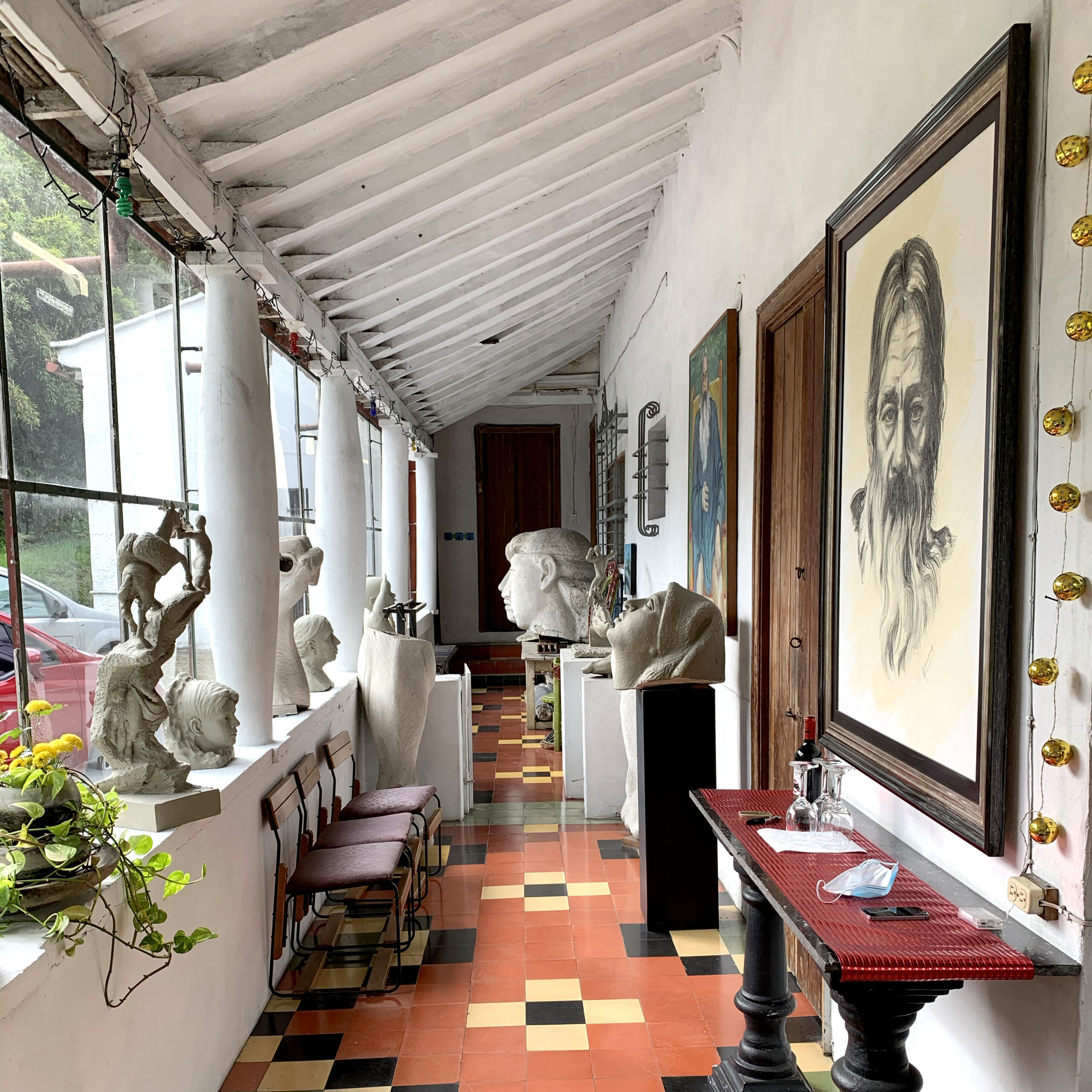 Al interior de la casa, la presencia arrolladora del trabajo inagotable del maestro irrumpe por rincones y paredes: moldes en yeso de rostros inmensos que parecen querer hablar; fotografías en gran formato de sus esculturas monumentales ancladas en parques, plazas y edificios de varias ciudades de México y Colombia; cuadros con bocetos; pequeñas esculturas en bronce y mármol todavía a la venta. No hay espacio libre en que una figura, una maqueta o un rostro no se exhiban, como si la casa fuera en sí misma un pedestal de su exuberante obra.