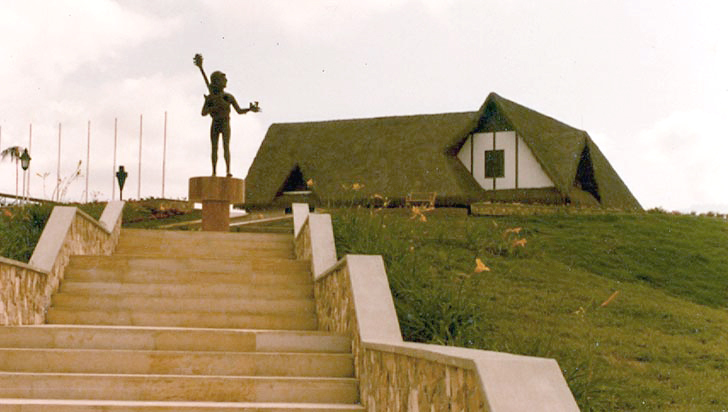 Antes de subir unos cuantos peldaños que conducen a un largo corredor frontal, coronado en ambos extremos por dos rotondas con ventanales, como pequeñas torrezuelas que le dan a la casa cierto aire señorial, se ven los bocetos en yeso de una serie de cinco esculturas de indígenas maya de tamaño natural, copias de las realizadas en bronce en los años cincuenta, cuando Arenas vivía en México, y cuyas réplicas se encuentran hoy en Fredonia, su pueblo natal.