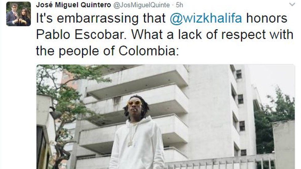 El 28 julio de 2016, Gutiérrez le increpó: “Es una ofensa a la ciudad y al país, miles de víctimas sufrimos con esta tragedia”. Ante la vehemencia del alcalde, Álvarez pidió disculpas por su “ignorancia”. Al año siguiente, el 25 de marzo de 2017, el alcalde calificó de “sinvergüenza” al renombrado rapero estadounidense Wiz Khalifa, por publicar fotos de una visita al edificio Mónaco y a la tumba de Escobar en su cuenta de Instagram. “No puede ser que vengan artistas acá o a cualquier ciudad del país y que hagan apología al delito y a la violencia. La verdad eso duele, da tristeza, da rabia, da indignación, da dolor”, dijo Gutiérrez en ese momento.